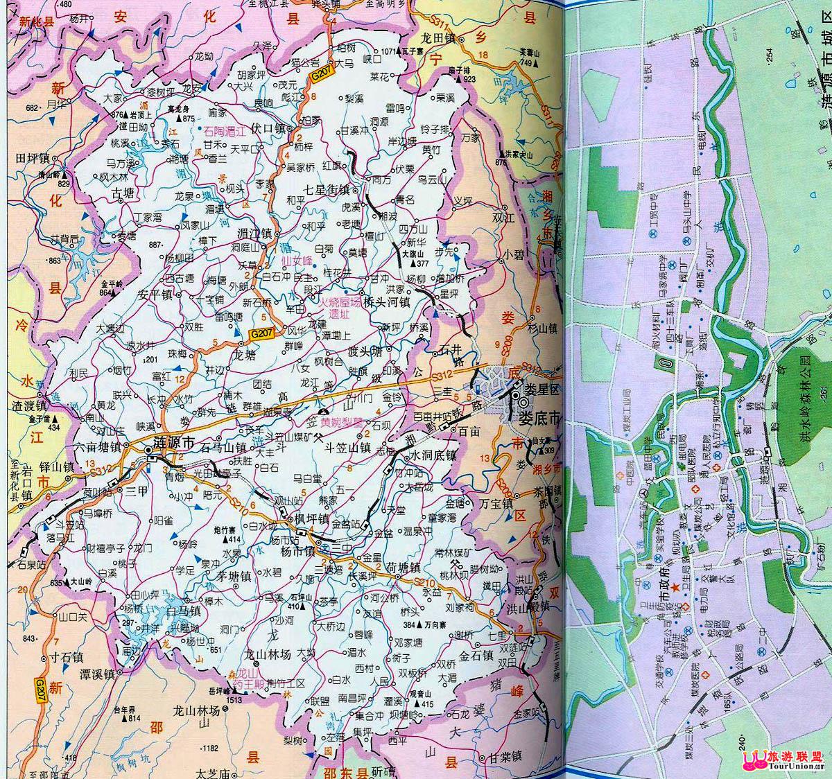 涟源,地处湖南省几何中心,是沟通湖南东西经济走廊的咽喉之地。[旅游联盟2015-4-7提供:旅游资源大全,免费旅游交易平台,旅游社区,旅游软件,www.tourunion.com]1951年建县,1987年撤县建市。[旅游联盟2015-4-7提供:旅游资源大全,免费旅游交易平台,旅游社区,旅游软件,www.tourunion.com]辖19个乡镇、1个街道办事处,全市总面积1895平方公里,总人口109万。[旅游联盟2015-4-7提供:旅游资源大全,免费旅游交易平台,旅游社区,旅游软件,www.tourunion.com] 涟源地处湘黔线和国道207线交汇处,其独特的交通区位优势和丰富的资源,为涟源经济发展奠定了雄厚的基础和潜力。[旅游联盟2015-4-7提供:旅游资源大全,免费旅游交易平台,旅游社区,旅游软件,www.tourunion.com]经过多年的发展,涟源在工业上已形成了采掘、机械、建材、冶金、制药、化工、食品加工、日用产品生产八大体系。[旅游联盟2015-4-7提供:旅游资源大全,免费旅游交易平台,旅游社区,旅游软件,www.tourunion.com]通过大力发展民营经济和对国有企业进行改造提升,一批以现代企业管理和高新技术为特征的外向型企业迅速崛起。[旅游联盟2015-4-7提供:旅游资源大全,免费旅游交易平台,旅游社区,旅游软件,www.tourunion.com]农业通过大力优化结构,发展“公司+基地+农户”的经营模式,逐步构建了区域化布局、专业化生产、规模化经营、社会化服务的农业产业化体系。[旅游联盟2015-4-7提供:旅游资源大全,免费旅游交易平台,旅游社区,旅游软件,www.tourunion.com]第三产业不断壮大,物流配送、连锁经营、品牌专卖、特许加盟、货运仓储和电子商务等新型商业已成为涟源商业的主流。[旅游联盟2015-4-7提供:旅游资源大全,免费旅游交易平台,旅游社区,旅游软件,www.tourunion.com]工业、农业、旅游业等三次产业三驾马车齐驰并进,将涟源经济带入了快速发展的新时期。[旅游联盟2015-4-7提供:旅游资源大全,免费旅游交易平台,旅游社区,旅游软件,www.tourunion.com] 涟源地处雪峰山东南麓,全市地形多为丘陵和山地,年平均气温16℃,降水量1328毫米。[旅游联盟2015-4-7提供:旅游资源大全,免费旅游交易平台,旅游社区,旅游软件,www.tourunion.com]农业主产水稻、甘薯、柑橘、茶叶和猪、牛、羊畜养等。[旅游联盟2015-4-7提供:旅游资源大全,免费旅游交易平台,旅游社区,旅游软件,www.tourunion.com] 境内最高峰龙山岳坪峰上有建于唐代的药王庙,是湖南省的重要古迹。[旅游联盟2015-4-7提供:旅游资源大全,免费旅游交易平台,旅游社区,旅游软件,www.tourunion.com]另外还有七星寨、湄江、红水岭等风景名胜。[旅游联盟2015-4-7提供:旅游资源大全,免费旅游交易平台,旅游社区,旅游软件,www.tourunion.com]北部湄江风景秀丽,堪称三湘一秀;南部龙山被称为“天下药山”、“植物王国”、“天然氧吧”;白马湖风光秀丽,被誉为“湘中明珠”。[旅游联盟2015-4-7提供:旅游资源大全,免费旅游交易平台,旅游社区,旅游软件,www.tourunion.com]