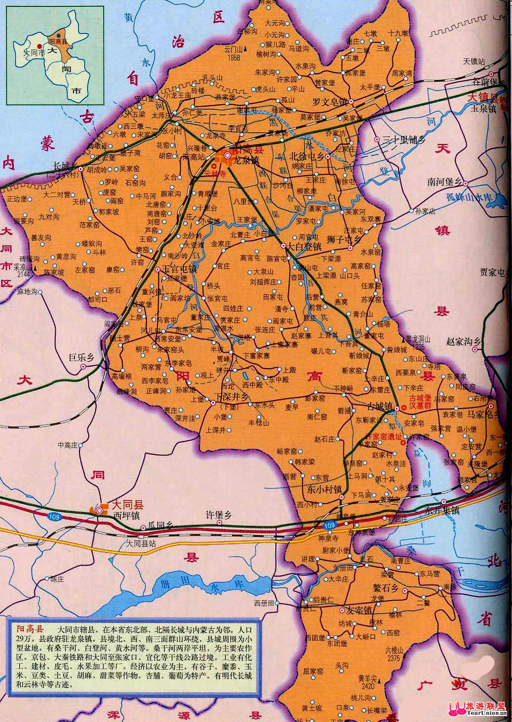 在阳高县境内桑干河畔的东小村乡尉家小堡村,是塞上知名的葡萄乡。[旅游联盟2018/5/18提供:旅游资源大全,免费旅游交易平台,旅游社区,旅游软件,www.tourunion.com]这里,每到夏日,村里村外,葡萄满架,枝叶繁茂,呈现出一种特有的丰采。[旅游联盟2018/5/18提供:旅游资源大全,免费旅游交易平台,旅游社区,旅游软件,www.tourunion.com] 尉家小堡育葡萄已有二百多年的历史。[旅游联盟2018/5/18提供:旅游资源大全,免费旅游交易平台,旅游社区,旅游软件,www.tourunion.com]葡萄,已成为这里农民的传统经济作物。[旅游联盟2018/5/18提供:旅游资源大全,免费旅游交易平台,旅游社区,旅游软件,www.tourunion.com]这里种植的葡萄,不仅种植面积大,而且产量高。[旅游联盟2018/5/18提供:旅游资源大全,免费旅游交易平台,旅游社区,旅游软件,www.tourunion.com]