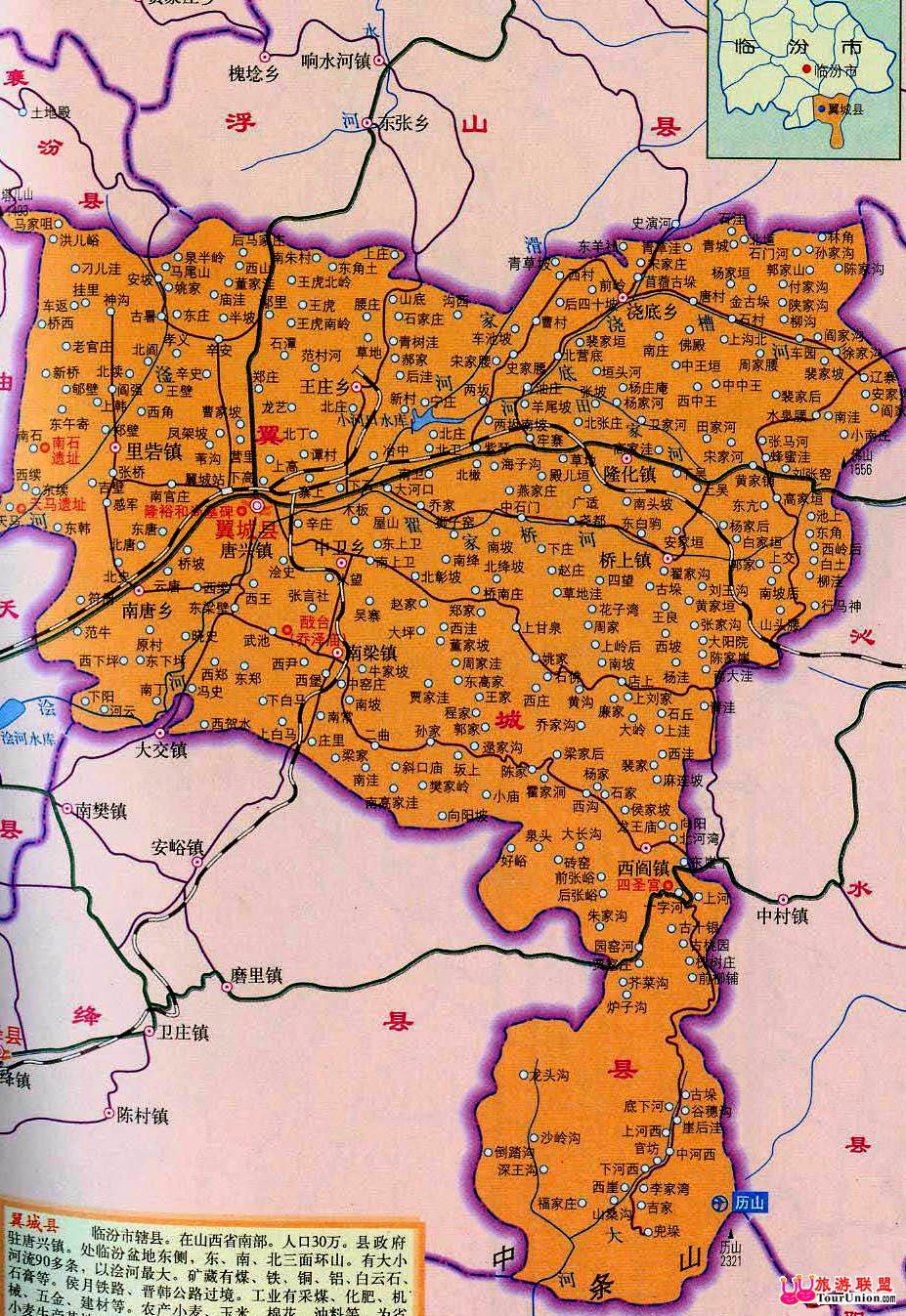 在翼城县东南部有一座形如鸟展双翅的山峰,此山树木葱郁,百鸟争鸣,站在高处俯视,犹如一只翱翔蓝天的雄鹰,其名翔山,又名翔翰山、翔峰。[旅游联盟2015-11-29提供:旅游资源大全,免费旅游交易平台,旅游社区,旅游软件,www.tourunion.com]山前就是夏商时期的唐国旧地、西周初唐叔虞的始封地,也就是后来晋国的都城———翼。[旅游联盟2015-11-29提供:旅游资源大全,免费旅游交易平台,旅游社区,旅游软件,www.tourunion.com] 据《史记·晋世家》等古籍记载,周武王与妻子邑姜欢会时,曾梦见天帝对他说:我让你生个儿子,名字叫虞,将来可把唐国封给他。[旅游联盟2015-11-29提供:旅游资源大全,免费旅游交易平台,旅游社区,旅游软件,www.tourunion.com]后来胎儿出生了,手心果然有个“虞”字,故起名为虞,人称叔虞。[旅游联盟2015-11-29提供:旅游资源大全,免费旅游交易平台,旅游社区,旅游软件,www.tourunion.com]后人怀疑这是个神话传说,认为婴儿初生不可能手心有这么复杂的字。[旅游联盟2015-11-29提供:旅游资源大全,免费旅游交易平台,旅游社区,旅游软件,www.tourunion.com]实际在古文中“虞”字作“”,其手纹如此是可能的。[旅游联盟2015-11-29提供:旅游资源大全,免费旅游交易平台,旅游社区,旅游软件,www.tourunion.com]这在晋国故事中叫“有文在手”。[旅游联盟2015-11-29提供:旅游资源大全,免费旅游交易平台,旅游社区,旅游软件,www.tourunion.com] 周成王时期,周公诛灭了叛乱的唐国。[旅游联盟2015-11-29提供:旅游资源大全,免费旅游交易平台,旅游社区,旅游软件,www.tourunion.com]当时叔虞已成长为勇武有力的年轻人,一次外出打猎时,碰见了一只大犀牛,他机智勇敢、巧妙周旋,最终用弓箭射死了这只凶猛的大犀牛,受到了朝野的赞赏,遂被封于唐国,史称唐叔虞。[旅游联盟2015-11-29提供:旅游资源大全,免费旅游交易平台,旅游社区,旅游软件,www.tourunion.com]当时的唐国在“汾河之东,方百里”(《史记》),大致以今翼城县为中心,包括曲沃、侯马一带。[旅游联盟2015-11-29提供:旅游资源大全,免费旅游交易平台,旅游社区,旅游软件,www.tourunion.com]这在晋国故事中应叫“翦唐封弟”,即周成王翦灭唐国,封弟弟叔虞于唐。[旅游联盟2015-11-29提供:旅游资源大全,免费旅游交易平台,旅游社区,旅游软件,www.tourunion.com]由于古文“唐”、“桐”可通假,古史中记为“翦桐封弟”,人们便望文生义地编出一段故事,并由司马迁载入《史记·晋世家》中:周成王曾与弟弟叔虞一起玩耍,在玩耍的过程中,成王看见梧桐树枝繁叶茂,他便从树上摘了一片桐叶,削成为圭形的图案赐予叔虞,并说:“把唐国封给你。[旅游联盟2015-11-29提供:旅游资源大全,免费旅游交易平台,旅游社区,旅游软件,www.tourunion.com]”站在一旁的史佚郑重地要求成王择日举行封唐典礼,成王这才说:“我与弟弟做游戏呢!”史佚说:“天子不可以开玩笑。[旅游联盟2015-11-29提供:旅游资源大全,免费旅游交易平台,旅游社区,旅游软件,www.tourunion.com]”于是叔虞受封唐国。[旅游联盟2015-11-29提供:旅游资源大全,免费旅游交易平台,旅游社区,旅游软件,www.tourunion.com]