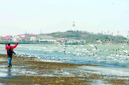 3月10日上午,烟台市区第一海水浴场惊现千鸥觅食景观,海鸥沿绵长的海岸线时而迎风飞翔,时而落地找食,众人惊呼此景已多年未见。[旅游联盟2012-12-17提供:旅游资源大全,免费旅游交易平台,旅游社区,旅游软件,www.tourunion.com]工作人员称海鸥岸边觅食有可能与天气有关,近几日大风大浪将不少海中生物冲上岸边。[旅游联盟2012-12-17提供:旅游资源大全,免费旅游交易平台,旅游社区,旅游软件,www.tourunion.com] 烟台市海洋环境监测预报中心的工作人员告诉记者,海鸥集中觅食与海洋环境的改善不无关系。[旅游联盟2012-12-17提供:旅游资源大全,免费旅游交易平台,旅游社区,旅游软件,www.tourunion.com]
