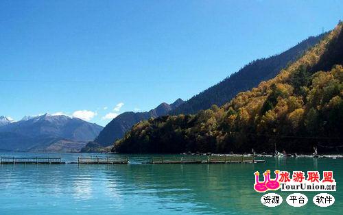 巴松错四面环山,气候温和,湖面平均海拔3538米,长约15公里,平均宽度2.5公里,湖水最深处为166米。[旅游联盟2022/10/1提供:旅游资源大全,免费旅游交易平台,旅游社区,旅游软件,www.tourunion.com]