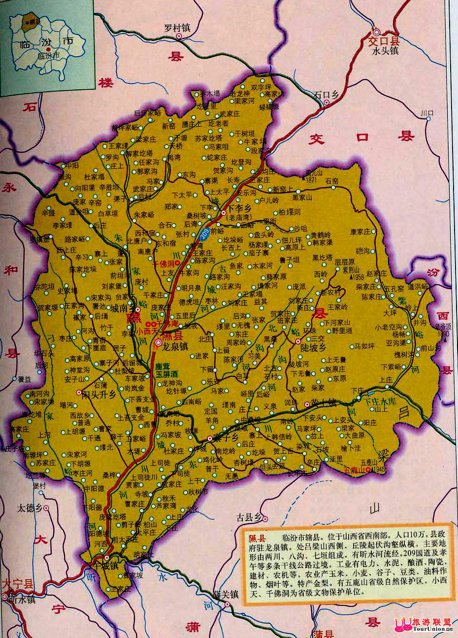 临汾旅游地图