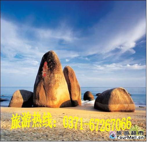 增送项目 ★蜈支洲岛(半天放飞心情) ★海南旅游人身保险★海边捉蟹,拉网捕鱼 ★特色小鱼温泉★热带植物园★免费升级一晚五星海边住宿(香水湾) 品质保证 ★全程两晚海边四星酒店,送一晚五星海边酒店。 ★决不换点,不强制加点,不强迫客人消费(推荐消费)、全程无购物(加点随客意) ★天涯海角保证陆游 D1:郑州——三亚 【降临海中之岛、体验热岛风情】 晚 12:10乘豪华客机JD5140降临美丽鹿城——三亚、接机后抵达酒店,身心放松迎接第二天的圆梦之旅。 宿:三亚海悦湾酒店或同级(四星) D2:三亚——三亚 【畅游东海龙宫、穿梭热带雨林】 早中晚 早餐乘游览天涯海角、南天一柱(2小时);后游大(小)东海潜水基地,可自费参与海上娱乐项目;蝴蝶谷,领略独具海南热带风情的天下第一湾——亚龙湾中心广场、贝壳馆;乘亚洲最长的跨海索道、游览世界上唯 一的自然猕猴保护区南湾猴岛(自理138元/人),车赴迷人的陵水香水湾酒店,傍晚和当地的渔民一起张开 弥天大网,做大海的儿女,亲身感受拉网捕鱼的乐趣。 宿:香水湾度假酒店或同级(五星) D3:三亚——兴隆【独占鳌头雄风、梦回海外桃源】 早中晚 早餐后,乘车前往亚洲经济论坛常设会址所在地—博鳌成立会址,博鳌水城-玉带滩(自理70元/人);体验万泉河竹筏漂流;游览海南第一山--东山岭;亲身体验集舒适与医疗一体的特色理疗温泉——鱼疗温泉,你可以亲眼目睹可爱的小鱼游曳在你的周围,晚间可自费观赏泰国红艺人的精彩表演。 宿:兴隆正昊寿仙温泉酒店或同级(挂四) D4:兴隆——三亚 【情聚情人之岛、牵手亚龙之湾】 早中晚 早餐后,游览AAAA级景区热带植物园,游著名的AAAAA级景区海山奇观——大小洞天(自理128元/人),后前往蔚蓝大海中的最苍翠岛屿,放逐心灵的世外桃源——赠送蜈支洲岛,这里有最婆娑的椰林,洁白的沙滩,海水清澈,能见度达7—10米(不含岛上中餐),晚间可自费品尝南国生猛海鲜风味。 宿:三亚海悦湾酒店或同级(四星) D5:三亚——郑州 【收获美丽三亚、回首浪漫天涯】 早 早餐后车览椰林海岸风景线――椰梦长廊;早08:30乘机JD5139返回温暧的家!结束愉快旅行! 友情推荐:红艺人150元、 水肺潜水380元、 海鲜风味大餐150元、 大小洞天128元、 玉带滩70元、 南湾猴岛138元
