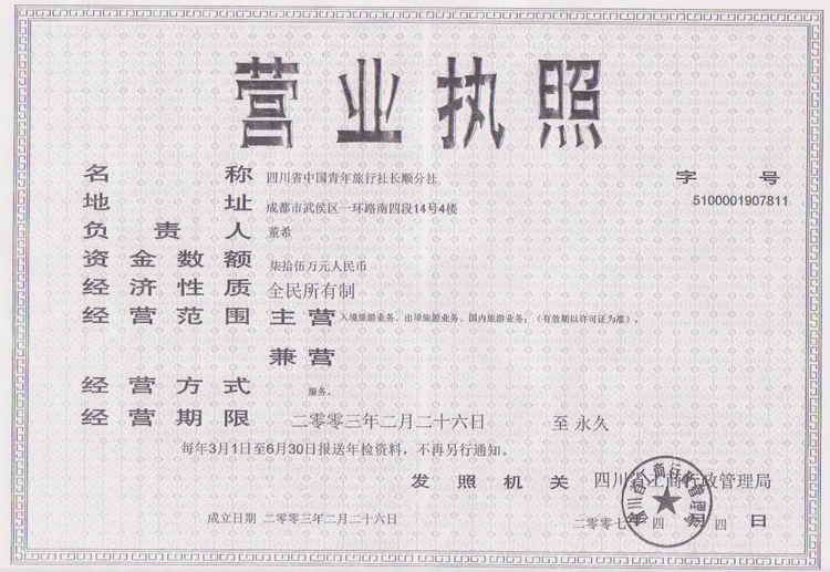 四川省中国青年旅行社长顺分社 诚信指数