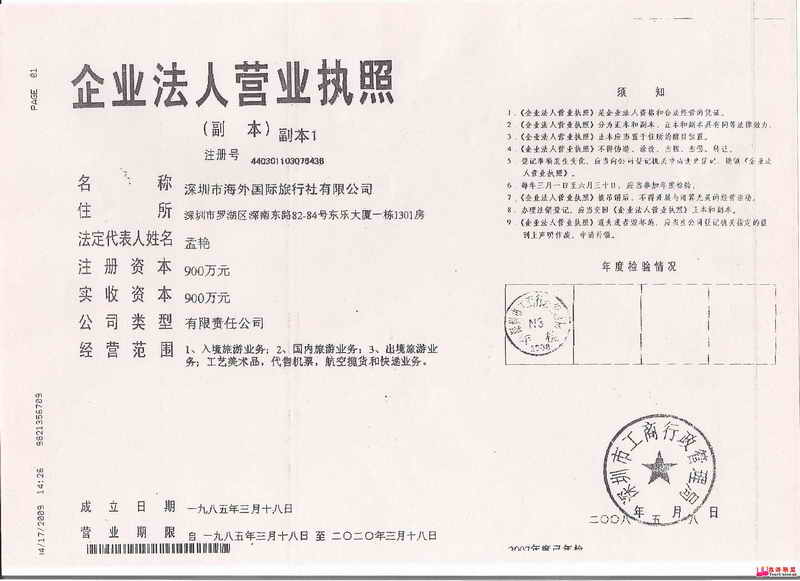 深圳海外国际旅行社有限公司_天下行 诚信指数