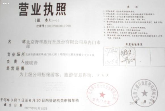 北京青年旅行社股份有限公司西单门市部 诚信指数