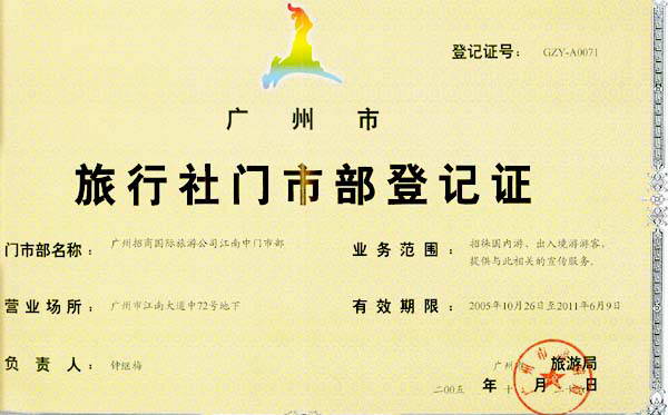 招商局是國家大型企業集團,有132年历史,源远流长,总资产达700多亿元,交通基建(港口与公路)、海陆运输(大型油輪、液化氣運輸及第三方物流)、金融证券(銀行、證券、基金及保險經纪)、地产置业(房地產開發和成片開發區建設)、高新科技及工业贸易,旅游酒店是招商局的七大主要产业。代表性企业(含参股企业)有招商局国际(上市)、招商银行(上市)、华北高速(上市)、东北高速(上市)、中国基金 (上市)、蛇口控股(上市)、中集公司(上市)、招商证券、招商保险、太平洋保险等。招商局集團在全國主要旅遊城市擁有15家國際旅行社、3家航空運輸代理公司及1家旅遊船公司,在日本、英國、俄羅斯、香港等地設立了旅遊事務所或合資旅行社。另有19家酒店分佈于上海、廣州、深圳、杭州、寧波、漳州等地。广州招商国旅将秉承集团公司优势,以客为本,重视质量,努力开拓出国游、国内游、省内游旅游新线路,提供高竞争力、高性价比的旅游产品,是您旅游的新选择。我们的咨询电话:020-84262000(20条线),网址:http://www.ghl.com.cn欢迎咨询后到本地银行转帐报名;(附帐号:473-2013-0981149910001;公司户名:广州招商国际旅游公司;开户银行:广州招商银行东风支行)。