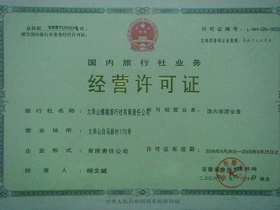 五、公司的资质:法人执照3429002390023 旅游许可证L-AH-GN00222 机构代码证75487416-9