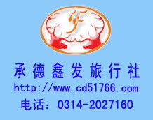 许可证编号:L-HEB-GN04055 承德鑫发旅行社有限公司,是经承德旅游主管部门及工商部门批准注册并足额交纳质量保证金及旅行社责任保险的合法旅游企业。荣获河北省“2000年度百家消费者满意旅行社”称号,承德鑫发旅行社经过多年来的不懈努力已具有较高的社会声誉;良好的企业形象;公司拥有的高素质的员工及导游队伍可为您提供专业化、个性化、多样化的服务。