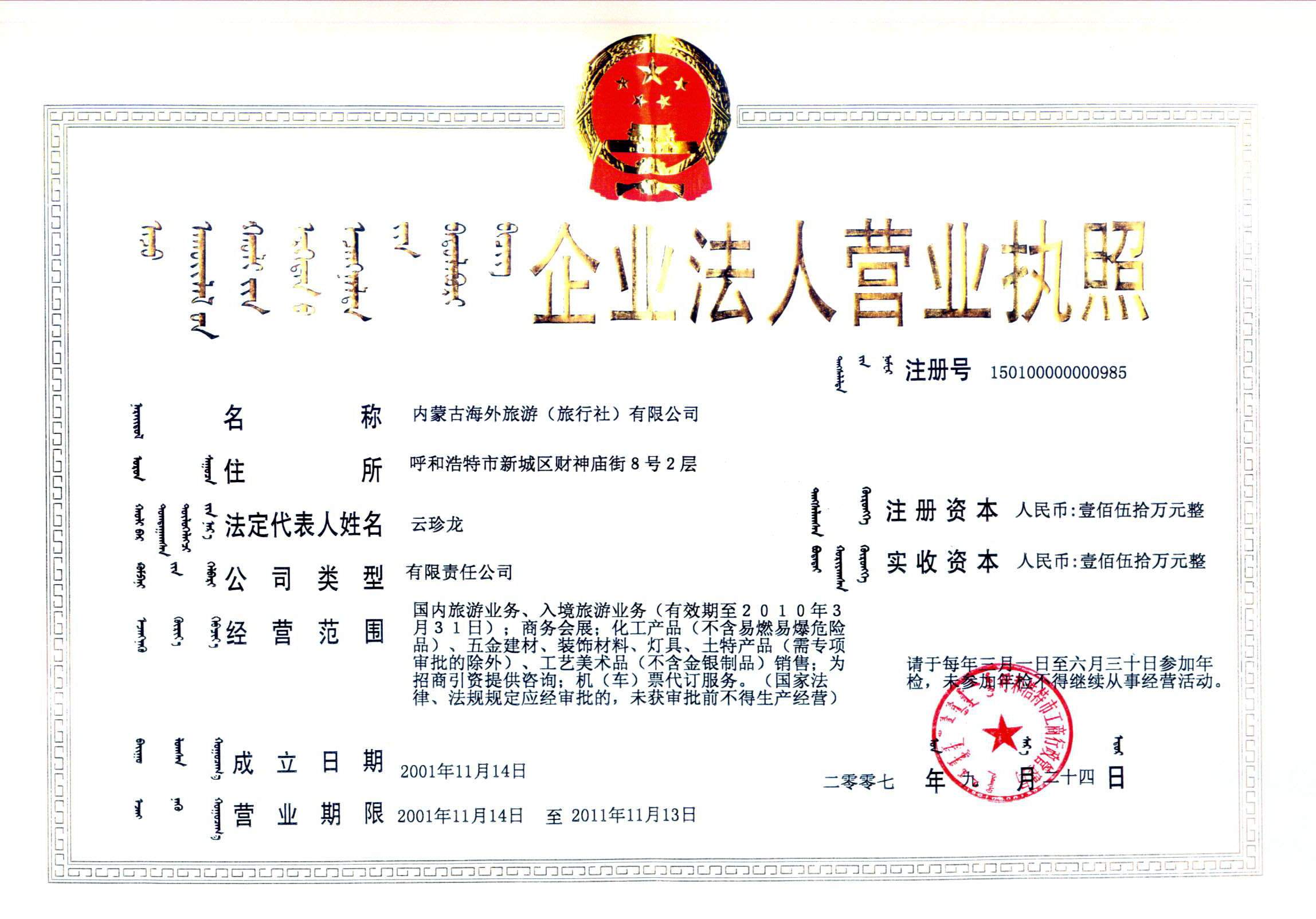 旅游许可证:L---NMG--GJ00031