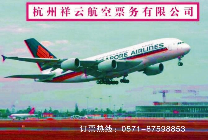 杭州祥云航空票务有限公司,位于浙江省杭州市风起路198号,是经中国民航总局批准的杭州市区唯一一家航空机票代理企业。主要销售国内机票,各航空公司打折机票,团队特价机票;代理国际机票。公司与国内各大航空公司建立良好的销售代理关系,具有雄厚的实力。为您提供365天订票和免费送票服务!长期销售杭州特价机票折扣线杭州---北京、广州、成都、深圳、西安、海口、济南、青岛、哈尔滨、重庆、乌鲁木齐、厦门、福州、长春、贵阳、丽江 、天津、沈阳、长沙、温州、宜宾、南宁、三亚、桂林、昆明、拉萨,大连,兰州,天津,武汉,太原,桂林,南宁,西宁,沈阳,晋江,银川,郑州,呼和浩特,石家庄,昆明...等航线均有团队去返程折扣机票3折起售!